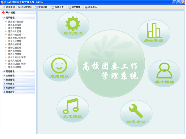 1、组织建设 包括团支部干部管理、团员基本信息管理、团员干部管理、团员转入管理、团员转出管理、团员发展计划管理、团员入团管理、团费收缴管理、团籍注册管理、团内奖励管理、团内处罚管理、推优入党计划管理、推优入党管理、团员培训部门管理、团员培训管理。